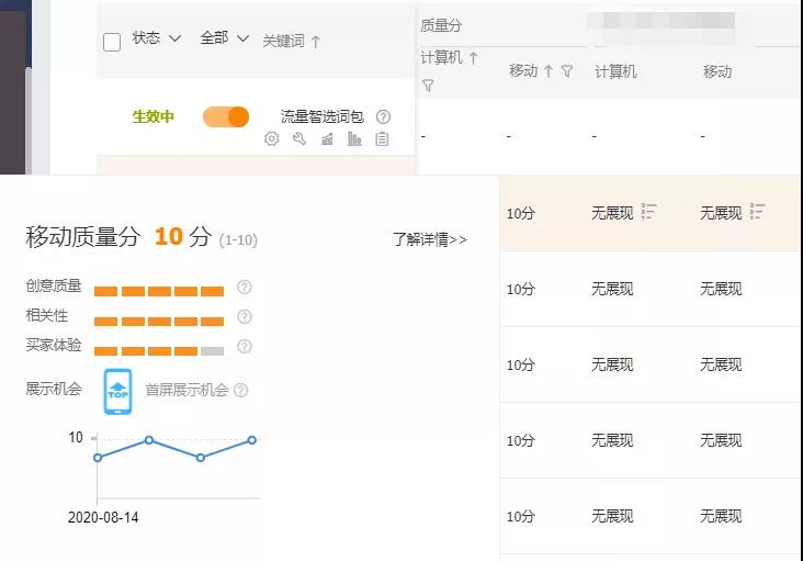 直通车是我们经常用到的一个推广工具,在推广的过程中,质量得分又对直通车的推广效果有着比较重要的影响。 质量得分主要是用于评估淘宝网用户搜索意向、关键词和宝贝推广信息三者之间的相关性。需要注意的是,直通车质量得分只是一个系统估算值;在直通车质量得分相同的情况下,哪怕出价相同,也还是会有排名上的差别。 质量得分是一个反应直通车关键词推广情况的动态指标,当推广…